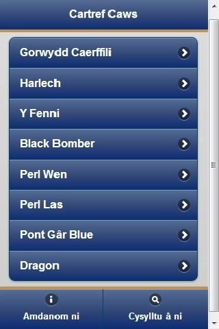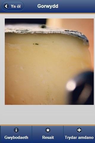 Mae’r App Cawsiau Cymreig yn App drwy gyfrwng y Gymraeg yn unig; ceir llun o bob caws, gwybodaeth amdano, resait blasus a wedyn linc i chi drydar am y caws!