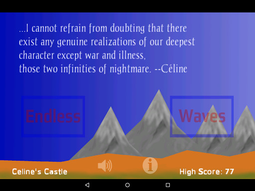 Still left to do: A few tweaks to the graphics, will attempt to finally bring Celine into the game itself. A better defining of waves and adding achievements. There are in-app ads and no plans of yet to create a non-ads version.