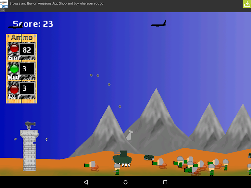 Pick the playing level you want. Waves and waves of marauding soldiers, tanks and planes attack your base. Or an endless constant stream of roughnecks giving you no rest. Be careful of your ammo supplies, they increase slowly and you can easily run out as the enemies overwhelm your location.
