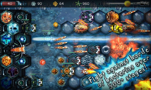 # Touch or slide the screen to shoot incoming bacterias with blazing projectiles