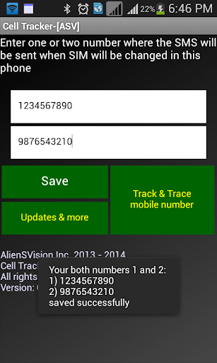 Now click ENTER button and proceed with the tracking options page, where you can enter any two mobile phone numbers of your choice.