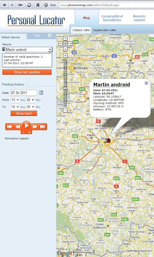 The application enables you to locate and record phone location and has the ability to share this information with other people. In the application itself you can display the location of all shared devices. On the web there is an option to display any historical data in the form of a trace.