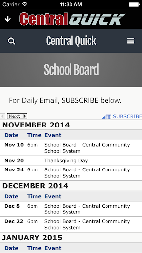 - Receive Daily Emails of Events