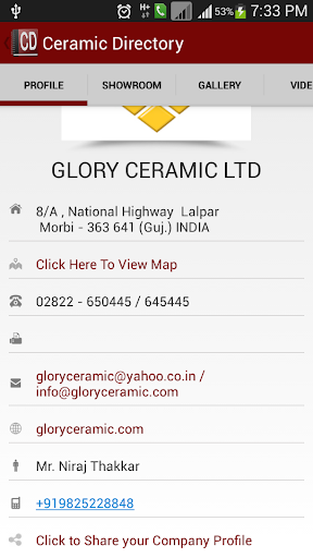 Ceramic Directory is providing huge market of the ceramic industries like Vitrified, Sanitaryware,Floor and Decor Tile,Wall Tile,Roofing Tile,Elevation Tile manufacturer as well as Tile Shop & Tile's Dealer .Ceramic Directory will provide you the details regarding the products of Ceramic in the World, the Company profiles, their Showroom details, etc. The User can directly view all the details of the showroom with the wide range of gallery and products of ceramic. Videos and Catalogs will provide the additional details regarding companies. Enjoy the exciting application and website of Ceramic Directory in a very short period of time and make your home attractive digitally. Hope you will like the page for recent updates..