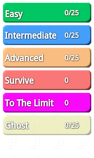 There is a list of the best times for each game mode. In modes Easy, Intermediate, Advanced and Ghost you get time to upload to Ranking when you complete all game levels. Total time is the sum of every level time. In Survive and To The Limit modes times can be uploaded from the first result.