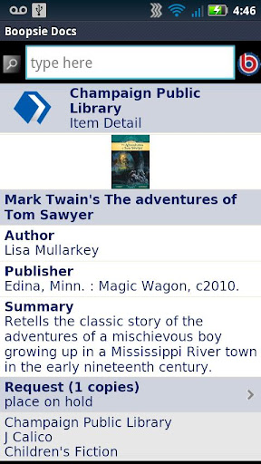 Use BookLook when you’re out shopping for books. Scan the ISBN barcode on any book, and BookLook will tell you if it’s available from the library.