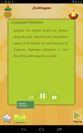 Swathi Soft Solutions, in collaboration with Krishnamacharya Yoga Mandiram bring to you in this App, a selection of mantra-s and sloka-s from the Veda-s and other texts that focus specifically on ensuring the success of our numerous personal and professional undertakings, be it the commencement of a new business initiative, sustenance of growth, or in the forging of meaningful interpersonal relationships.