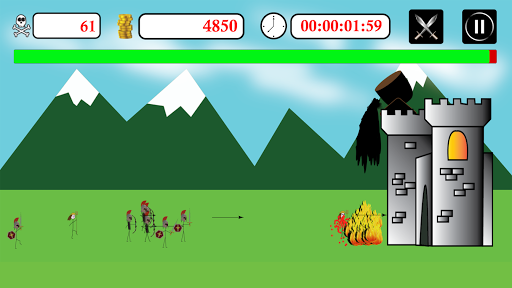 There is Chaos heading towards the Castle! Defend the castle at all costs! Build a defense and a strategy, and swipe your finger, aim and fire from a unique selection of weapon features including the mad cow launcher and obliterate your enemies with the ultimate fart and watch them turn to a pool of blood! See how long you can last from stick figure enemies charging your castle. Be careful to be strategic and build your castle and weapon upgrades to defeat and defend from ogres, catapults, stick figure swordsmen, stick figure vikings, dragons, and more!