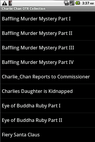 The Android App "Charlie Chan Old Time Radio Collection" is a full featured media player with: