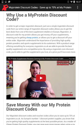 Welcome to the Cheap Protein Discount Codes app where we offer you the chance to save up to 50% on some of the best sports nutrition supplements and bodybuilding supplements available across sites such as Myprotein, Monster Supplements and many other sites.