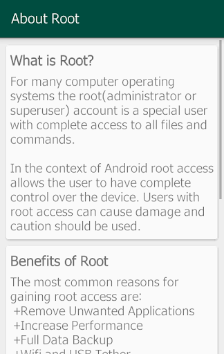 - Check Root - Root Validator also tell you: What is Root? Why you need Root Access? If you don't know about these things.