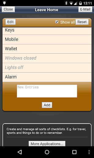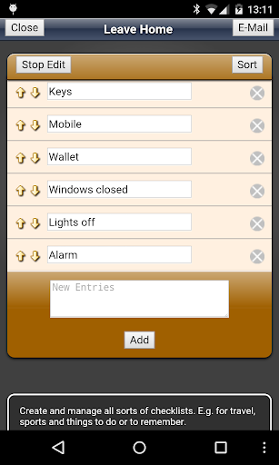 Create and manage all sorts of checklists. E.g. for travel, sports and things to do or to remember.