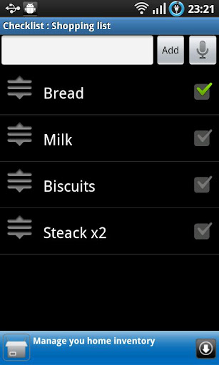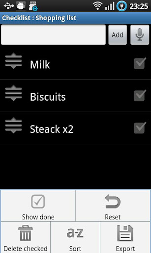 Create several checklists, make copies, and add items using virtual keyboard or voice.