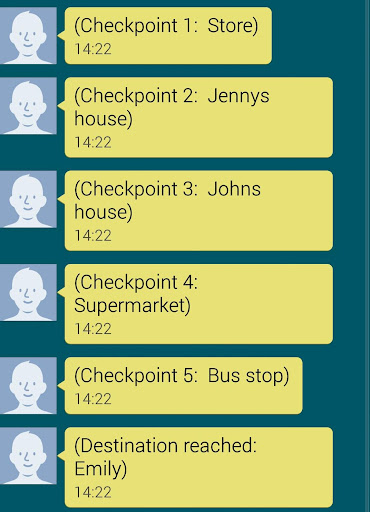 3. When you pass a checkpoint you press the button next to it and a message will be sent to the recipient saying you have reached the checkpoint.