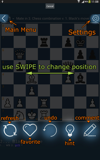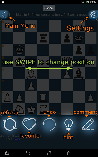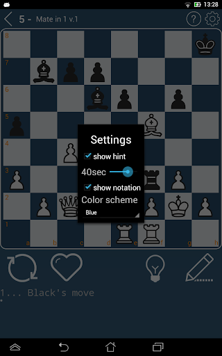 - With the help of the "Settings" button you can choose the style of the chessboard, set move highlighting and "hints", which is especially convenient for kids!