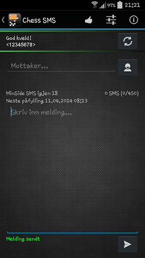 Hver måned får du 25 frie SMS (med mulighet til å kjøpe flere) som du kan sende kun fra Chess Minside websiden.