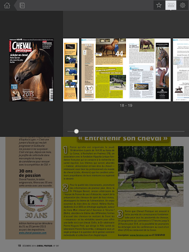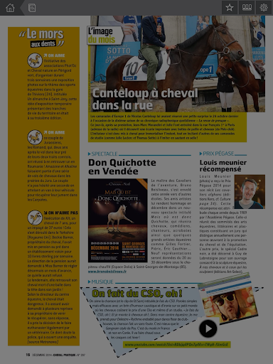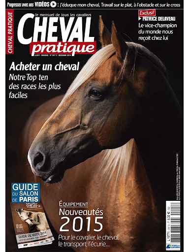 L’équipe rédactionnelle est composée de cavaliers et travaille en collaboration avec tous les meilleurs intervenants professionnels du secteur: vétérinaire, éleveurs, enseignants, cavaliers professionnels et de concours. Tous les mois Cheval pratique vous accompagne pour vous perfectionner et vivre en harmonie avec votre cheval. Disponible sur tablette cette formule enrichie vous permet de bénéficier d’un magazine interactif vous offrant plus de photos, des liens internet, des vidéos d’apprentissage, bref un contenu plus riche pour accompagner votre passion.