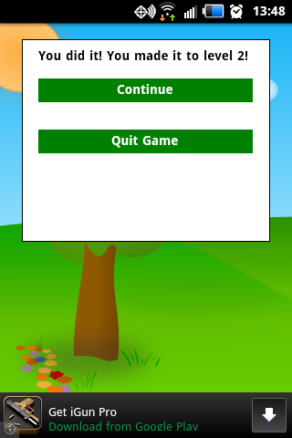 This is the free version of Chicken, so levels 1 to 10 are included. For unlimited levels, alligators and other cool features, download Chicken Plus from the Google Play store!