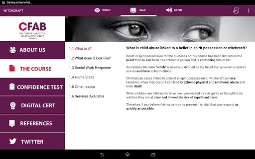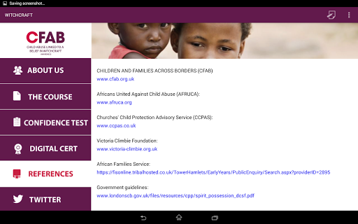 The Child Abuse Linked to a Belief in Witchcraft Awareness app is designed to train multi-agency professionals and communities to understand the issues and identify children who may be victims or potential victims.
