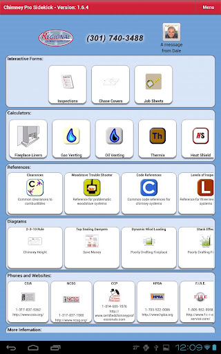This is a TABLET Version (7" and 10" screens) app is designed for Chimney and Venting Professionals. It contains tools for everyday use such as calculators for common items used in the chimney and venting field, chimney diagrams, manufacturer phone numbers and links to sites. References such as BTU Charts with reduction calculators, CO toxicity references, Levels of chimney inspections, Stainless Steel Alloy Guides, Common IRC and NFPA references, and Much More.