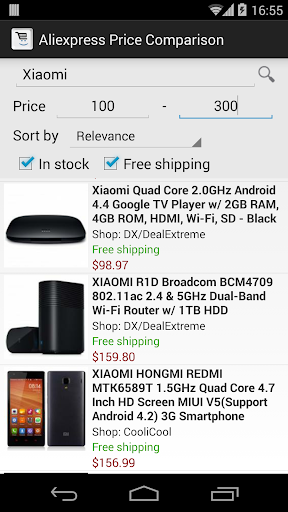 China Price Comparison shopping app helps you to find the best prices on Aliexpress, Dx, Buyincoins, Focalprice etc.