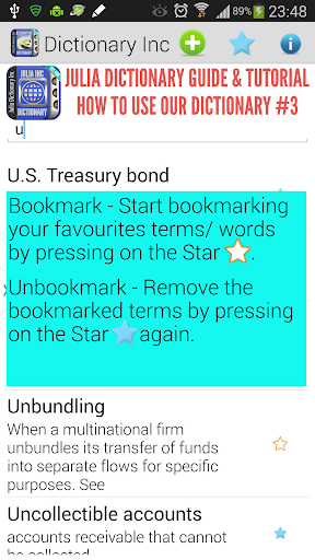 2. Bookmark – you are able to bookmark all your favorite translations for fast reference to your favorites list by clicking on the “star” icon.