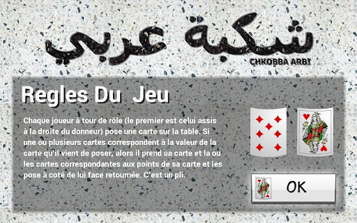 Dans la chkobba, on ne peut jouer qu'une seule carte à la fois. Le but est de ramasser le plus de cartes possibles, tout en ayant à l'esprit que chaque carte a sa valeur propre, soit en ce qui concerne sa valeur pendant le jeu (un à dix), soit en ce qui concerne la sienne dans le décompte final.