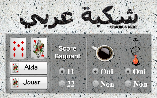 Le jeu est constitué de quarante cartes qui comporte dix cartes pour chacune des quatre enseignes traditionnelles : pique, cœur, carreau (appelé ديناري dīnārī, de l'italien denari) et trèfle. Les cartes sont numérotées de 1 à 7 et sont complétées par trois figures : la dame ayant la valeur 8, le valet ayant la valeur 9 et le roi ayant la valeur 10. Les cartes numérotées ont la valeur du nombre qu'elles portent.