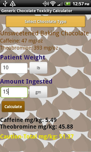 ChocToxVM is a tool for veterinary professionals to calculate toxicity in animals due to ingested substances. It contains two styles of calculators for dealing with chocolate toxicity and one for other toxins in pill or liquid form. It also has a section for toxin notes. In the Pro version all the lists used by the app can be edited and amended.