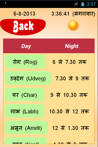 There are seven types of choghadiya's. Each day is divided into two time periods: