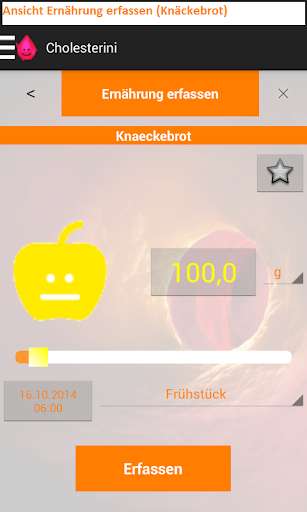 • Wählen Sie aus unserer Lebensmitteldatenbank mit über 16.000 Lebensmitteln Ihren Essenswunsch. Cholesterini vergleicht diesen automatisch mit Ihren Blutwerten.