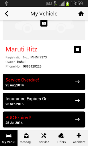 It connects you to Chowgule Industries and pulls out your car's details along with a complete service history. It sets automatic reminders for Insurance expiry, PUC expiry and service due date. It also gets your Insurance and PUC documents on your phone!