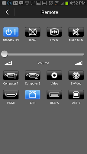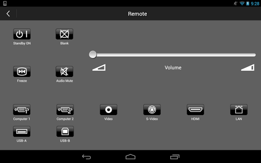 • Control projector: Standby/ On, Audio Mute, Blank and Freeze