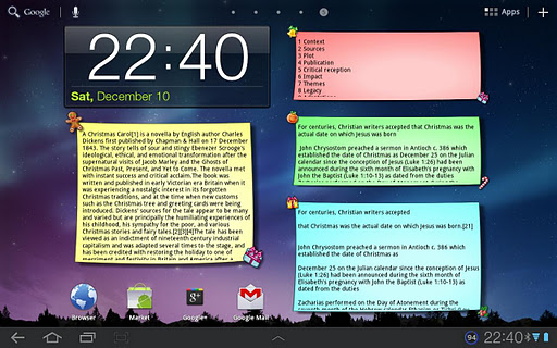 Add both style and utility into your Christmas themed device, with our simple and beautiful note taking widget. Add some color and spice on your Android’s screen and easily send cheerful cards to all your friends.
