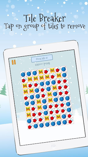 - Tile breaker tap on group of similar x-mas style tiles to break them and score points. Bigger groups give more points.