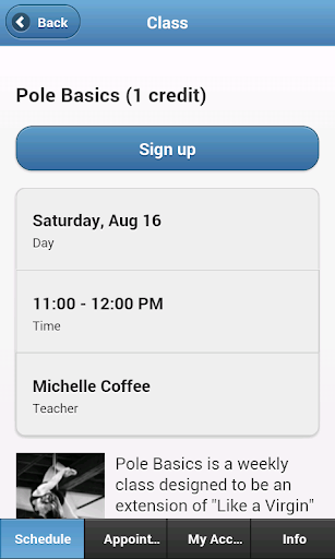 The Chrome Bar Pole Dance Studio's App allows you to seamlessly book and buy classes. From this App you will have access to class schedules, studio locations and contact information. Stay connected to The Chrome Bar with special flash sales and exclusive event notifications.