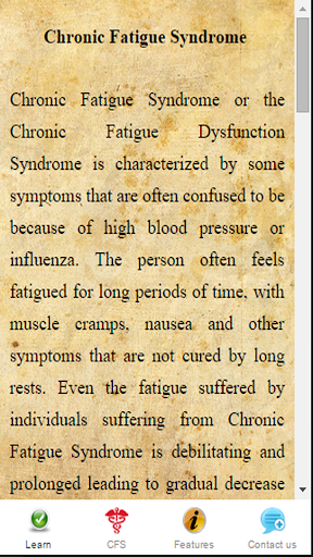 Chronic Fatigue Syndrome Guide App Is jammed full of helpful Information and does exactly what is say on the tin. So if you are suffering from Chronic Fatigue Syndrome the information in this app will help you.