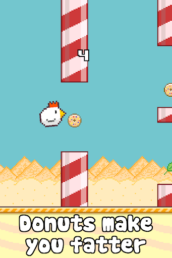 Chubby Chicken needs to watch his weight. Help Chubby Chicken stay slim by avoiding donuts. Too many donuts will make him too heavy to fly. If he gets too fat, feed him some healthy greens so he can poop. Don’t forget to watch out for the giant candy canes!