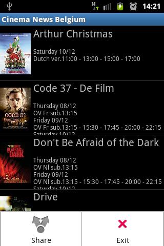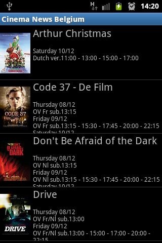 This app lets you find out the movie shows in any movie theatre of Belgium- UGC, Metrolopolis, Cinema Royal, Kinepolis, Nova, Aventure and many more.