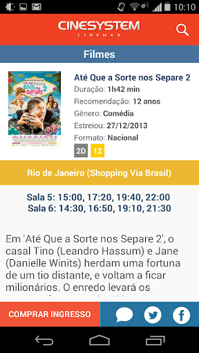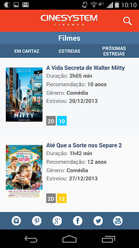 - Cinemas: GPS que localiza o Cinesystem mais próximo de você;