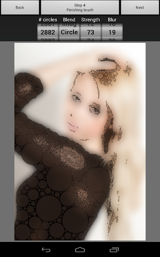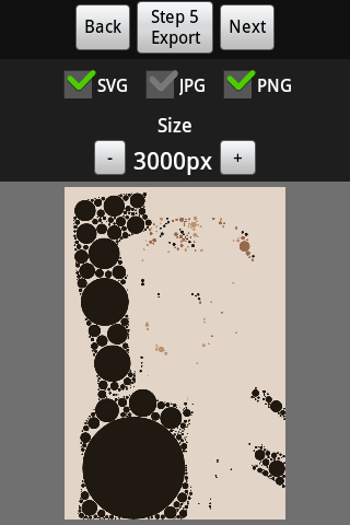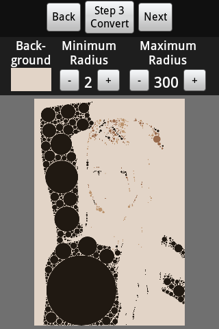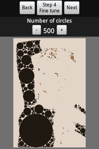 Just to set a correct expectation, given some feedback I received... This app is meant for people that want to create a real life artwork. The aim of this app is not to create impressive bitmap images... it's goal is to create a vector based result that can be used to create a real-life artwork (with laser cutters, cnc mills, ...). Have a look at the video to get a better idea. So beauty of the bitmap image is of minor importance than feasibility of the real life creation. For example... the fine tune step will not increase beauty, but will increase practical ease of creation. It reduces the number of circles by eliminating the less relevant ones. However with this step you loose of course detail.