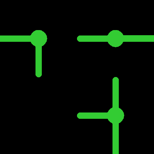The goal is to rotate the tiles so every line ends with a dot.