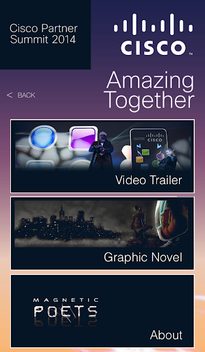 The Cisco Play Along app lets you learn about the Magnetic Poets and become a part of their live performance at the 2014 Cisco Partner Summit.