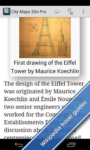 NEW: Interactive offline map PLUS Wikipedia travel guides for the whole world. INCLUDING unlimited maps and guide downloads. 100% offline. No data roaming or WiFi required. The most downloaded app of its kind. Ideal for trips abroad and at home. ♕ Featured in Time Magazine, WallStreetJournal, BBC Travel 1.) Offline maps:✚ 6,700 interactive maps for all parts of the world available✚ millions of POI (restaurants, shops, bars, ...)✚ 500,000 Wikipedia abstracts of sites and attractions✚ GPS: find your own location and perform nearby searches✚ search the map for addresses and places while offline 2.) Wikipedia travel guides:✚ extensive articles with text and images✚ places of interest and tourist attractions✚ add it to your map and use it offline 3.) Power features included:✚ for frequent travelers and mobile heroes ;-)✚ add your own places and pins to the map✚ create bookmarks of your favorite places✚ find hotel ratings from booking.com Included in this app for FREE:▶ Unlimited download of maps with worldwide coverage▶ Wikipedia travel guide content for all maps Features and reviews for CityMaps2Go:\"Essential app for travelers\", Time Magazine \"One of the best offline maps apps\", WSJ \"Maps without racking up roaming costs\", Macworld \"Travel Apps That Will Change Your Life\", Condé Nast Map Guarantee:All maps with worldwide coverage available for download! Should you need a map for an area that is missing, we'll create a map for you immediately upon request. Just e-mail to support@ulmon.com Data quality:Map data and POI are provided by OpenStreetMap and are updated by us regularly. To check the level of detail, go to www.openstreetmap.org. The same applies to Wikipedia travel articles. Use this offline map app and you will never have to carry around a paper city map or guide book. No matter whether you travel to top destinations in the USA, Europe or Asia such as New York, Los Angeles, Chicago, Miami, Paris, London, Rome, Berlin, Tokyo, Beijing, Shanghai. Or in your home country. Have reliable, interactive offline maps always available in your pocket, on your smartphone or tablet. Enjoy! :-) 新:互动离线地图PLUS维基百科的旅游指南对整个世界。包括无限的地图和指南下载。 100%离线。没有任何数据漫游或WiFi。下载次数最多的应用程序的一种。在国内外旅行的理想选择。 ♕在“时代”杂志,WallStreetJournal,BBC旅游特色 1)离线地图:✚6700交互式地图为世界提供的所有部分✚上百万的POI(餐厅,商店,酒吧,...)✚50万维基百科摘要景点和旅游景点✚GPS:找到自己的位置,并执行在附近搜索✚搜索地图上的地址和地点,同时离线 2)维基百科的旅游指南:✚广泛的文章,文字和图像✚的名胜古迹和旅游景点✚将它添加到您的地图和离线使用 3)电源特性包括:✚经常出差和移动英雄;-)✚添加您自己的地方和引脚的地图✚创建书签您最喜欢的地方✚来自booking.com的酒店评级 在这个免费的应用程序包括:▶无限下载地图覆盖全球▶维基百科的所有地图的旅行指南内容 特点和评论CityMaps2Go:“基本的应用程序为旅客”,“时代”杂志“其中一个最好的离线地图应用程序”,WSJ“地图”不用费尽了漫游费用,Macworld大会“旅游应用程序,这将改变你的生活”,康泰纳仕 地图保证:覆盖全球所有的地图可供下载!如果您需要一张地图,缺少的区域,我们会为您创建一个地图后,立即要求。只是电子邮件到support@ulmon.com 数据质量:OpenStreetMap的地图数据,POI提供的,并定期更新。要检查的详细程度,去www.openstreetmap.org“。这同样适用于维基百科的旅游文章。 使用这个离线地图应用程序,你将永远不会有随身携带的一纸城市地图或指导书。无论你旅行到美国,欧洲或亚洲,如纽约,洛杉矶,芝加哥,迈阿密,巴黎,伦敦,罗马,柏林,东京,北京,上海最热门的旅游。或者在您的国家。有可靠的,互动的离线地图总是可以在你的口袋里,在你的智能手机或平板。享受! :-)