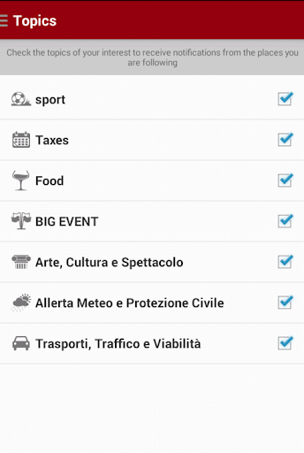 Il cityuser − che sia un cittadino o un turista − deve solo selezionare i luoghi e gli argomenti preferiti per ricevere in automatico notifiche avanzate, corredate di testo, immagini e di due funzioni importanti: “Memo”, per registrare l'evento nell’agenda delle scadenze, e l’integrazione con Maps, per trovare il luogo dell’evento o per calcolare direttamente il percorso.