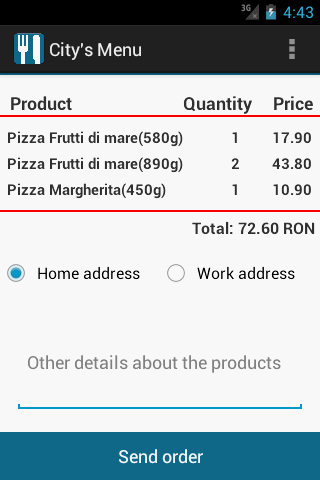 City's menu app displays the menus of restaurants handling delivery services in Romania's biggest cities.