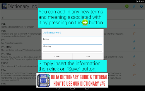 4. Add New Terms – you will be able to add in and store any of the new terms in this Dictionary.