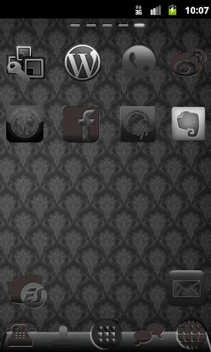 This is a minimalistic black theme for the GO-Launcher. Tested with 2.2 and 2.3 Android devices. Also tested on 4.0.3 device but it will only alter the look of several icons. This theme also comes with 3 simple wallpapers. Please note that we are only begginers in this industry and will greatly appreciate constructive feedback and criticism. This beeing said we hope you will enjoy the theme.