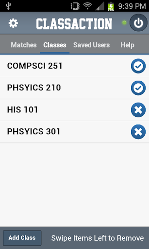 Connect with fellow university students and easily find nearby study partners. ClassAction allows you to build a list of your current classes, and then uses location services to find nearby students currently studying for the same classes. Turn on ClassAction while at the library or union, and see if someone nearby is interested in studying together. Easily start a chat with any user that matches your criteria! ClassAction is an academic oriented way of social networking for students.