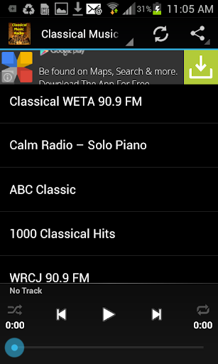 Classical Music Radio features over 50 popular radio stations playing Classical Music 24/7 and is completely FREE !